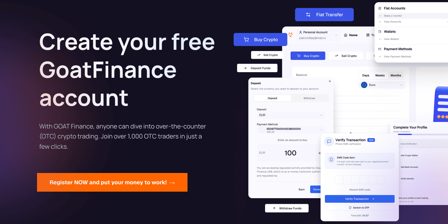 With GOAT Finance, anyone can dive into over-the-counter (OTC) crypto trading. Join over 1,000 OTC traders in just a few clicks.